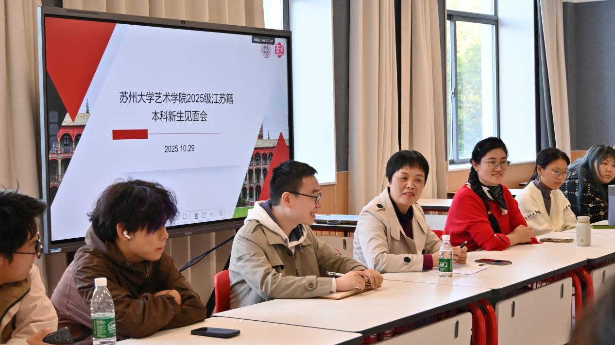 为做好本科招生宣传工作,推动本科生成长陪伴计划,帮助江苏籍新生更好地融入大学生活,2025年10月29日,苏州大学艺术学院在天赐庄校区北校区知行楼312教室举办2025级江苏籍本科生见面会。本次活动由艺术学院学生发展支持中心与“苏小招”招生宣传志愿者协会共同承办。