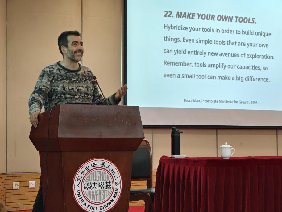 讲座伊始,艺术学院党委副书记、副院长张洁老师对讲座流程进行了简述,并对Rui老师进行了简要介绍。张洁老师以诚挚的热情欢迎Rui老师的到来,并期待他为苏州大学的师生们带来关于艺术与科技融合的前沿观点。