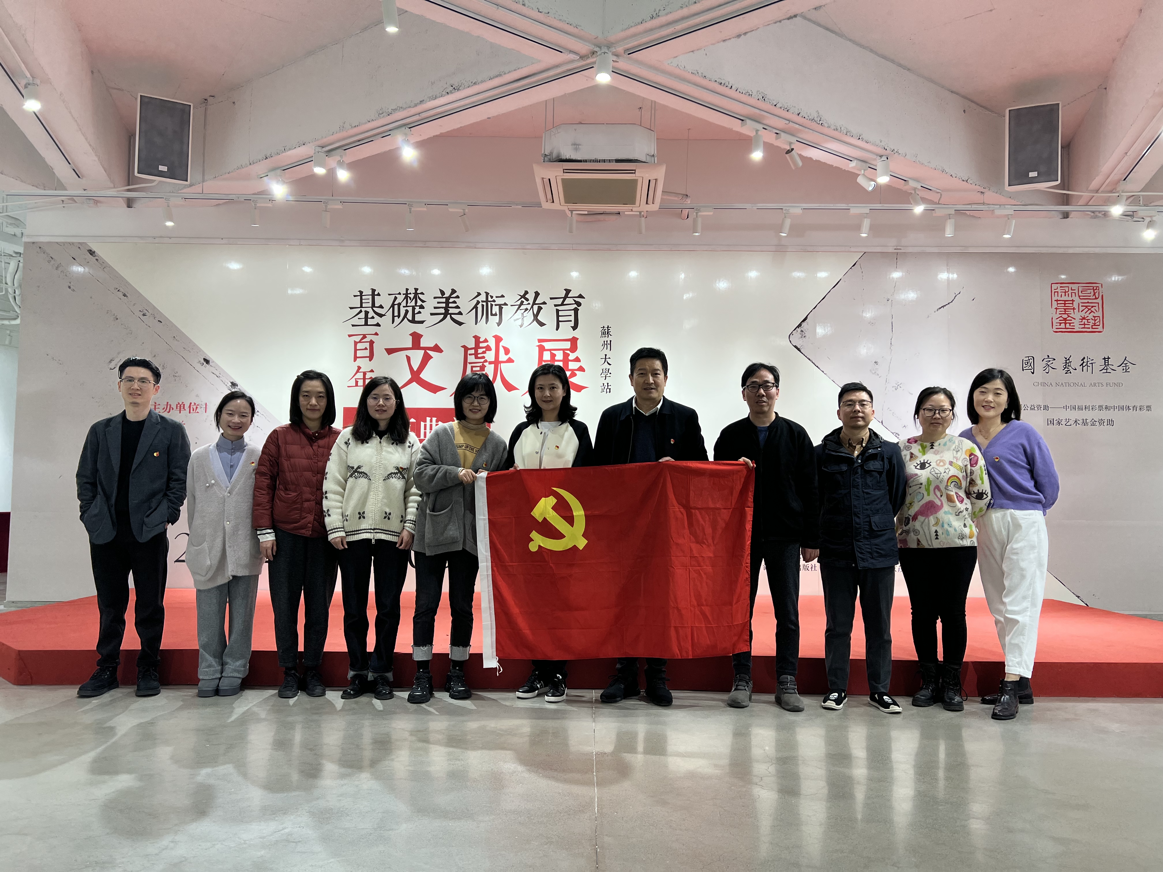 支部党员首先集体参观了苏州大学美术馆基础美术教育百年文献展,邀请国家艺术基金项目负责人、美术系万竹青老师现场讲解,以更高的政治站位和更广阔的学术视野梳理解读美育发展历史,推动美育在艺术学院各项工作中的融合共进。