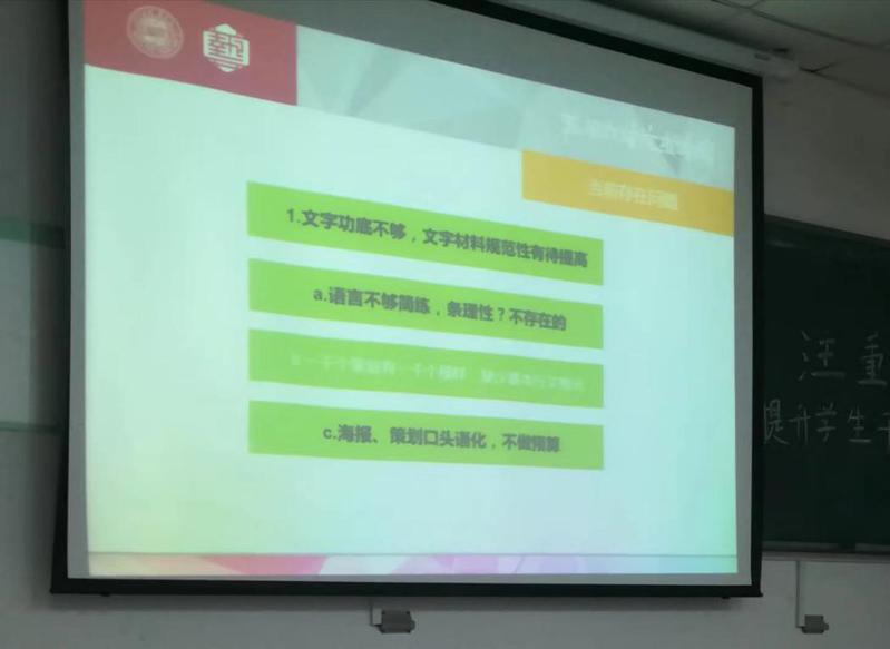 随后,沈院生老师提出了学生组织当前存在的问题,并一一作出了分析与解答。又对学生组织应该如何注重细节提出了意见和建议,并建议学生组织要提升自己的组织文化,搞好组织氛围。