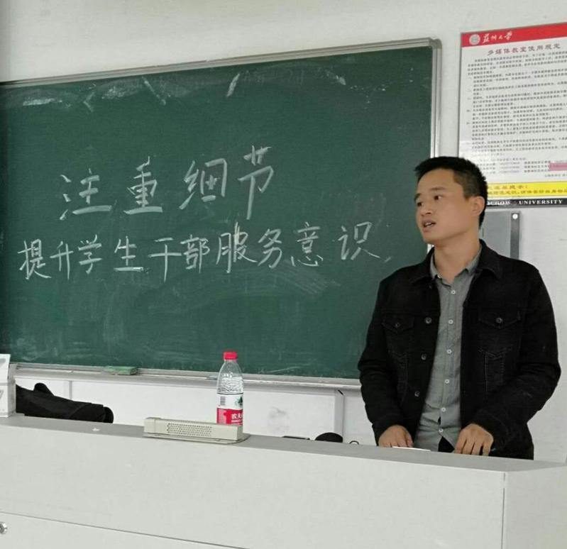 首先,沈院生老师简要介绍了本次会议的目的,并作出了“学生干部是普通学生与学院之间必不可少的纽带和桥梁”这一定义,要求各学生干部要做好与学生之间的联系,为同学们服务。