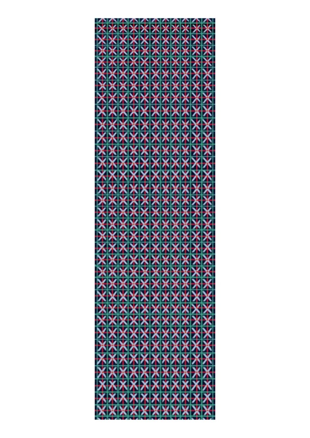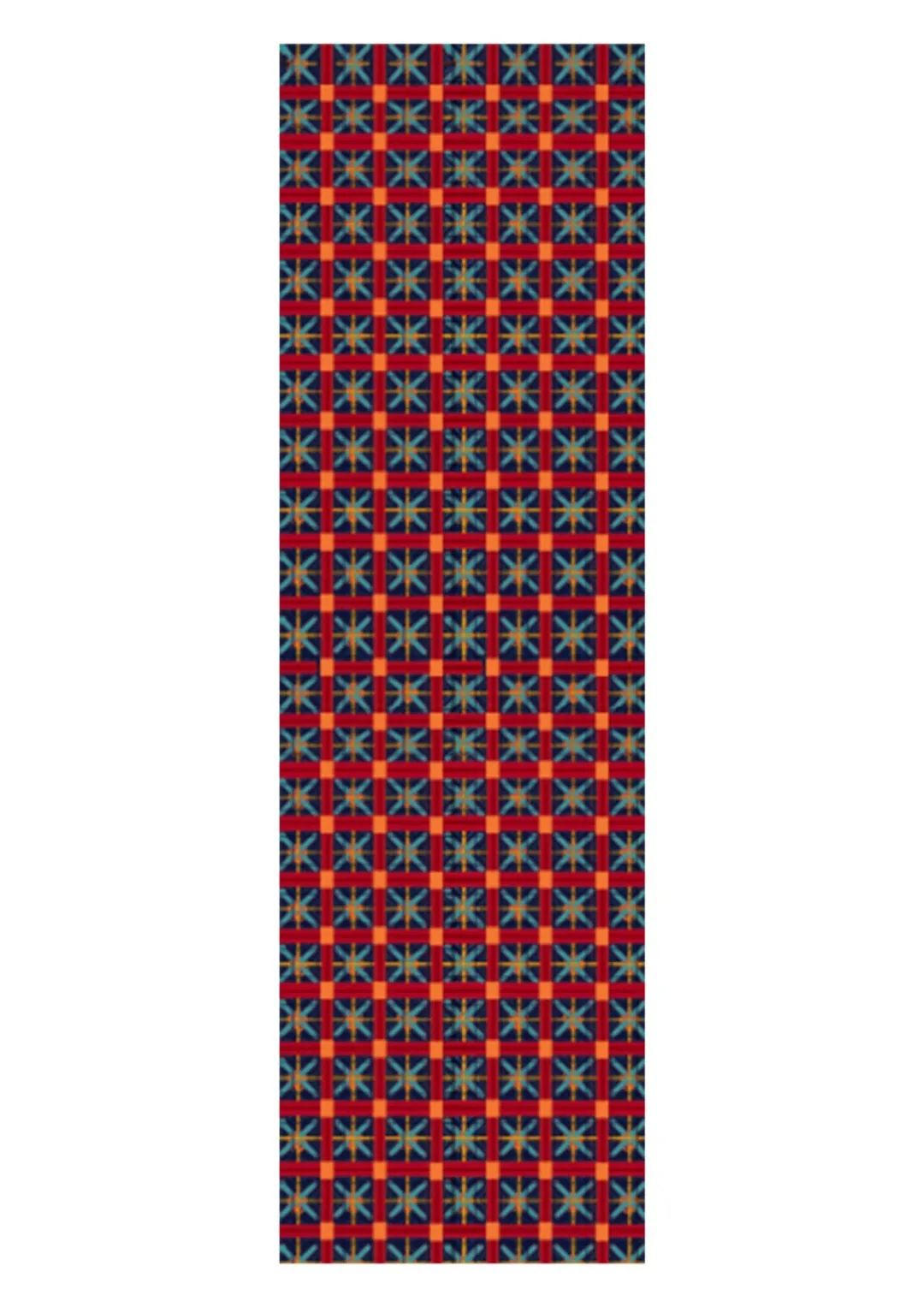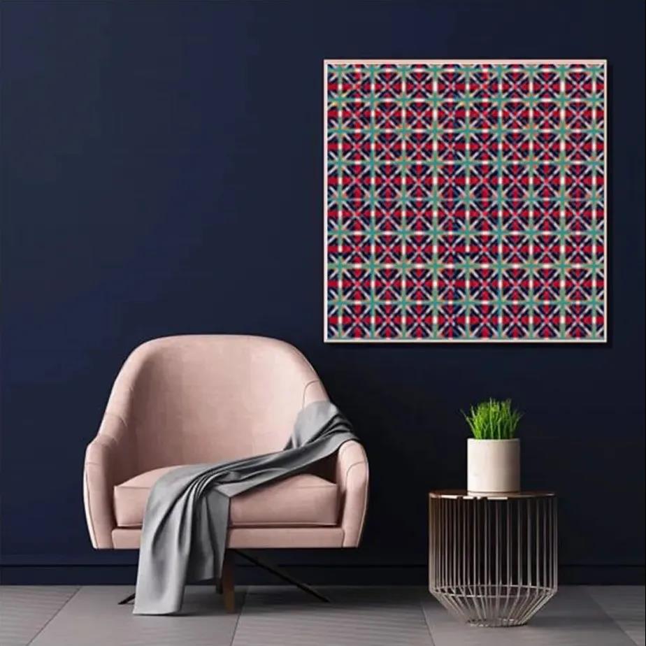 将传统的崇明色织土布与当代艺术家丁乙的作品进行了结合,传统土布自有的繁密复杂的花纹与丁乙的十字纹、斜纹碰撞在一起,自然地营造出一种极为繁复、精美风格的作品。