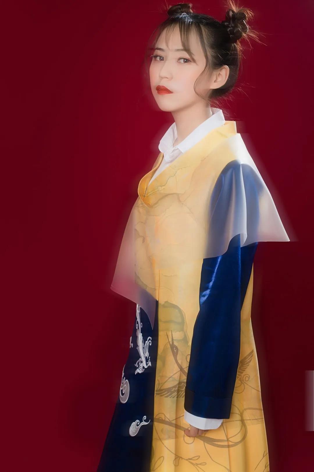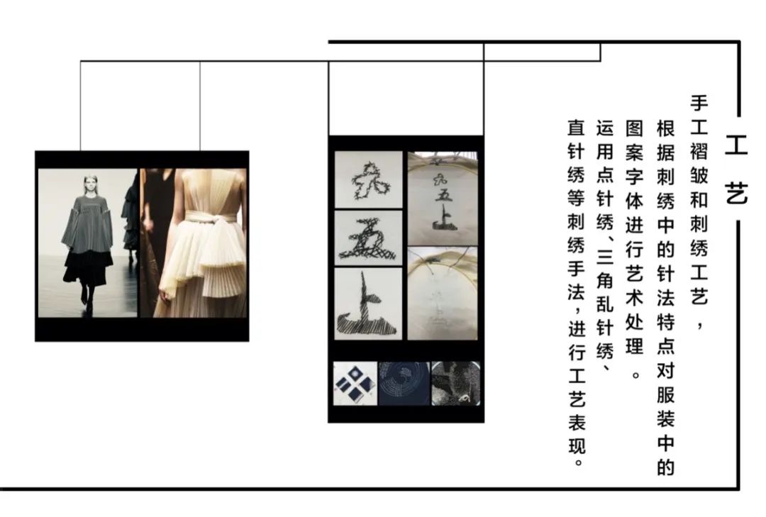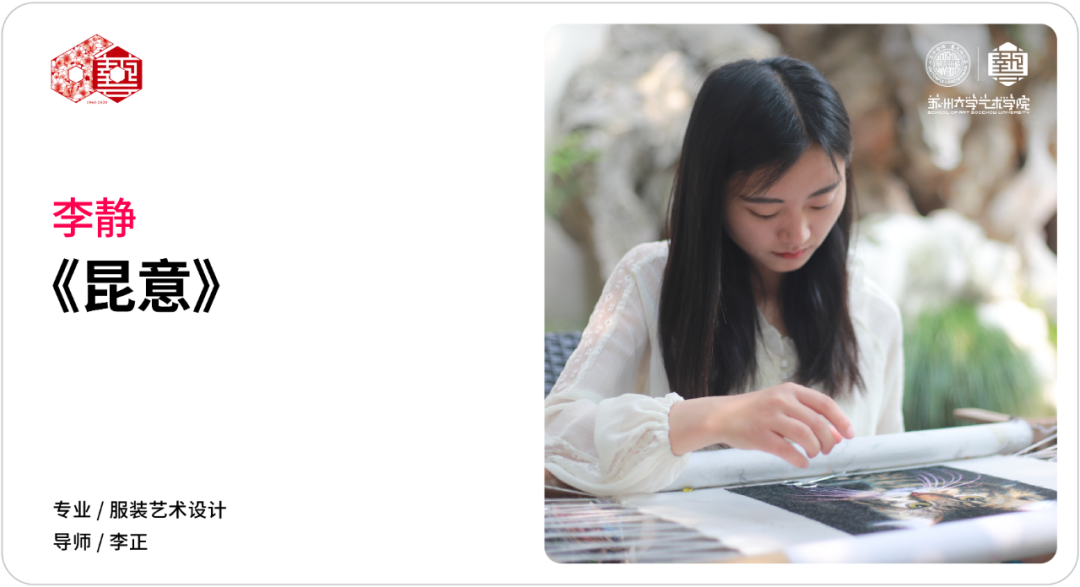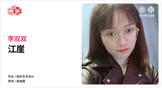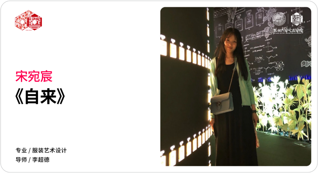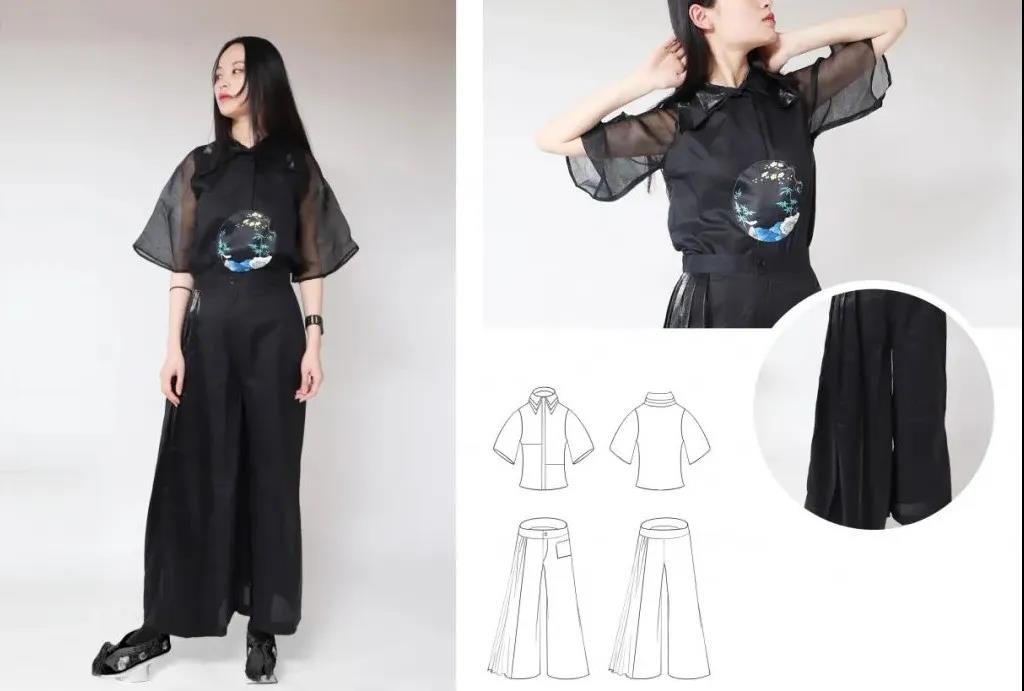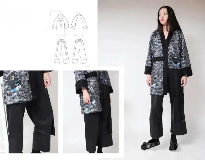 此系列服装设计主要是以清代宫廷吉服中的团花纹饰为设计灵感,从服装的色彩、面料、工艺、布局等多方位入手,力求在符合现代审美的基础上创新设计团花纹饰,传承其形式内涵与吉祥文化。