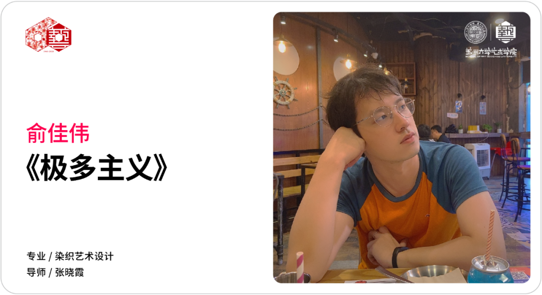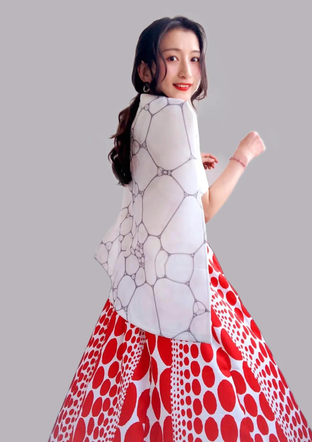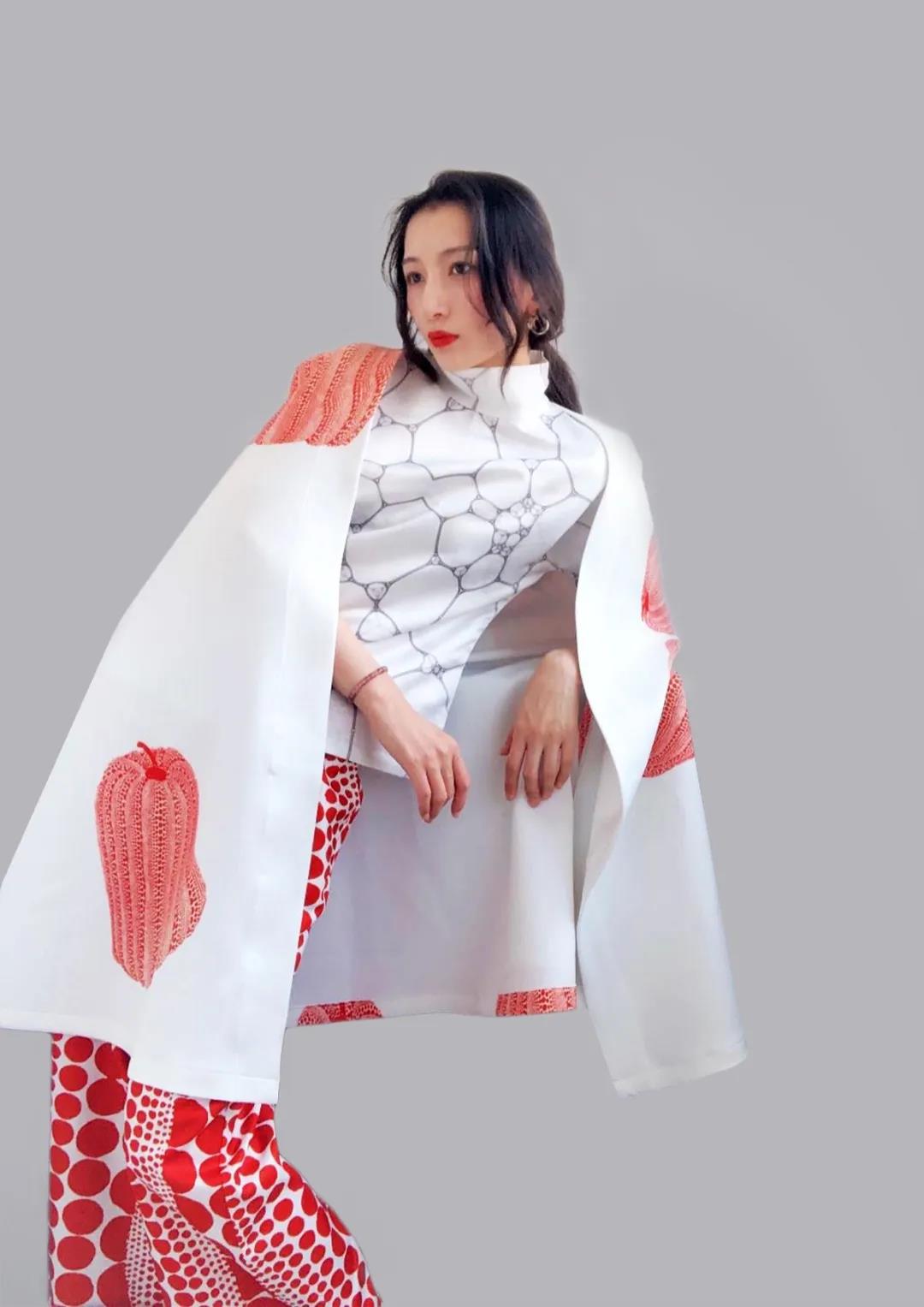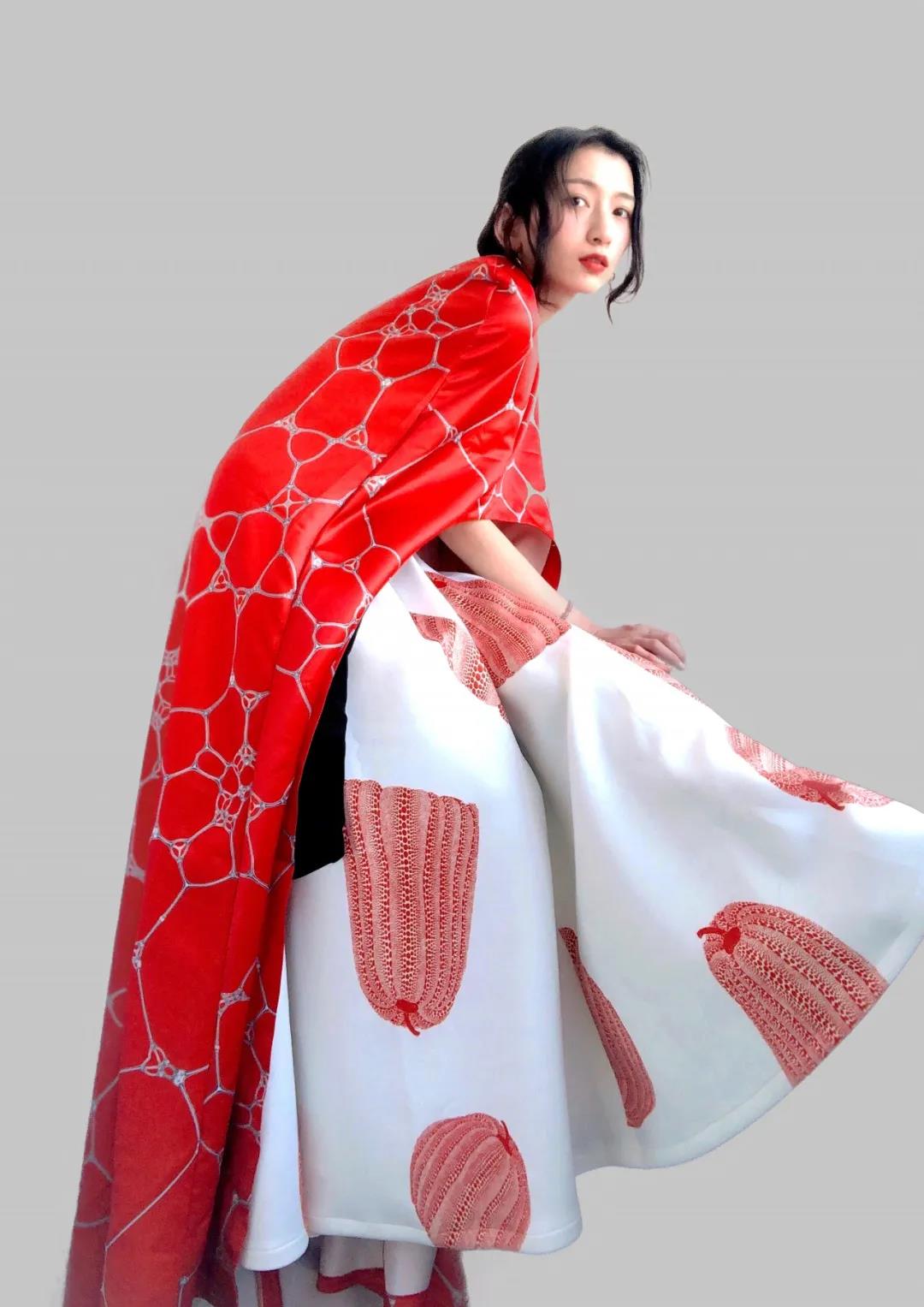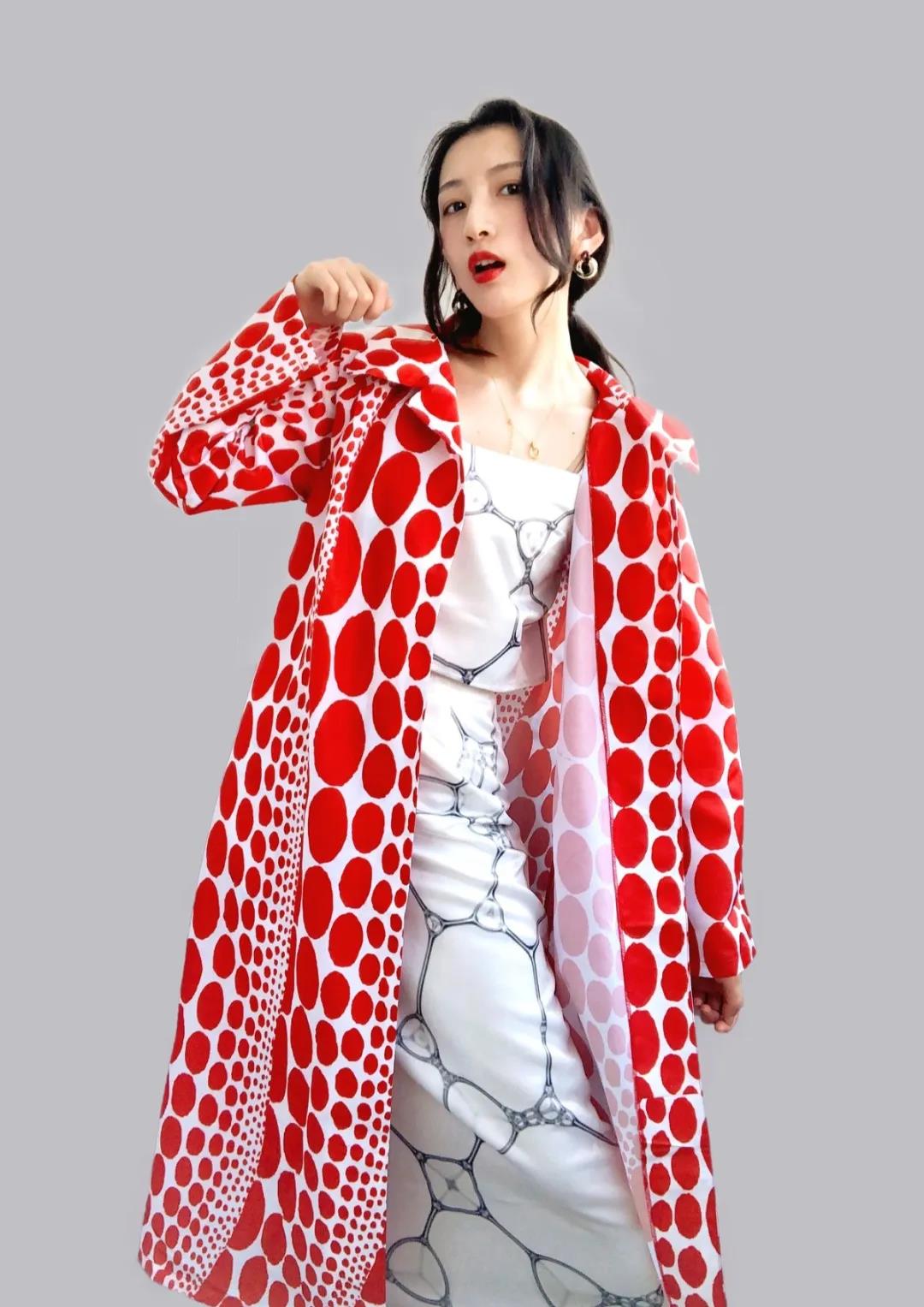 灵感源于草间弥生的网绘和南瓜系列作品,它们展现了草间弥生极具特色的艺术风格,她用重复的网纹和圆点使有限的空间变成无限的可能,给我的创作带来很多启发;在色彩运用上,该系列主要以红色和白色为主,平静的白色和热烈的红色强烈碰撞,形成强烈的视觉冲击力,这两种色彩也是草间弥生热衷运用的,借此向这位前卫女王致敬。