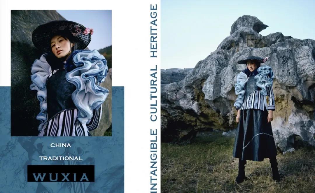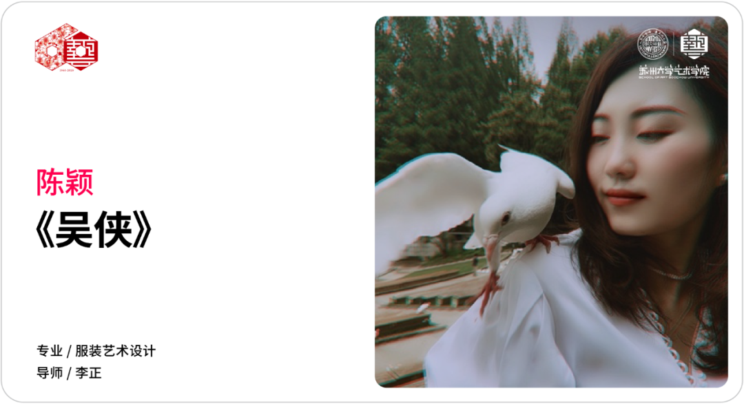 《吴侠》描绘了新时代窈窕秀气的江南温婉女子对铮铮铁骨之气魄的向往,系列设计中注入中式文化,将旗袍、披风、肚兜、绣球、蓑衣等元素提炼,以新中式表达新女性对美好形体、美好精神、美好传统品德的追求。在设计中将闺阁之物外化,掀开藏于重帘之中的娴熟典雅并引透出来。