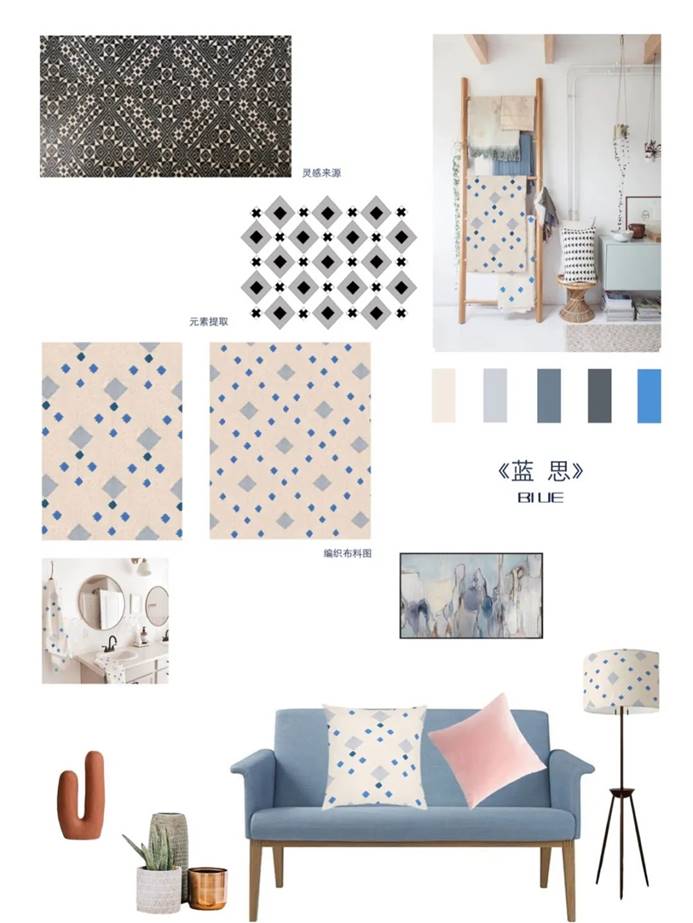 从平面设计的角度出发,将设计方法与设计思维运用到南通蓝印花布的创新设计中去,以品牌的理念作为支撑点,进而设计出满足现代人生活需求和审美需求的家居产品,探究南通蓝印花布的纹样美、工艺美、光影美,实现蓝印花布融入现代人们的生活中去,从而促进传统工艺的活态传承。