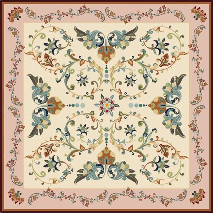 有着“墙上的博物馆”之称的敦煌莫高窟壁画是丝路遗留下的珍贵文化艺术宝藏,活跃于壁画中、藻井中的唐卷草纹飘逸灵动、生生不息。设计者以莫高窟壁画中唐卷草纹为研究对象,做当代纺织品设计的再创作实践探究,让传统纹样再次焕发新生。