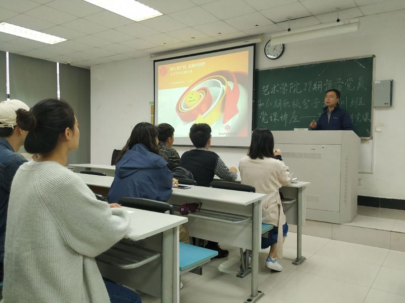 2018年11月5日下午,艺术学院分党校2018年秋季第一次专题党课暨第三十九期预备党员培训班开学典礼于独墅湖606-6105举行。艺术学院党委书记王尔东做了“加入共产党,实现中国梦”的专题党课,艺术学院辅导员贾扬娣主持了本次培训班开学典礼。艺术学院全体预备党员和积极分子参加了本次讲座。