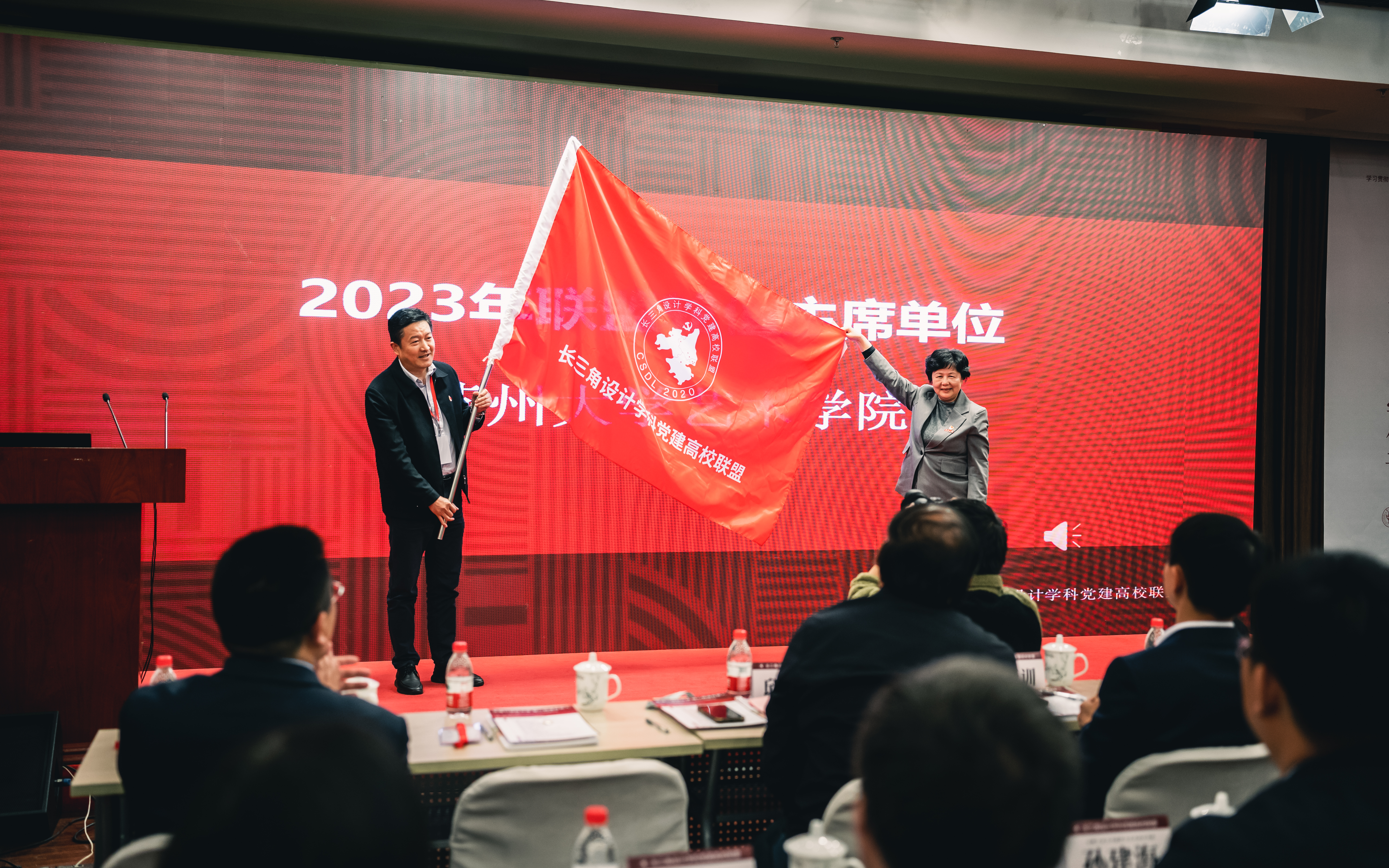 年会进行了2023年联盟轮值主席单位交接仪式。苏州大学艺术学院党委书记顾德学从东华大学服装与艺术设计学院党委书记吴晶手中接过联盟会旗帜,顾书记表示作为新一届轮值主席单位,苏州大学艺术学院将与联盟兄弟高校共同推进长三角高校设计学科党建工作,紧紧围绕“党建引领高质量发展”这一主题,充分凝聚长三角一体化发展的文化力量和学科特色。