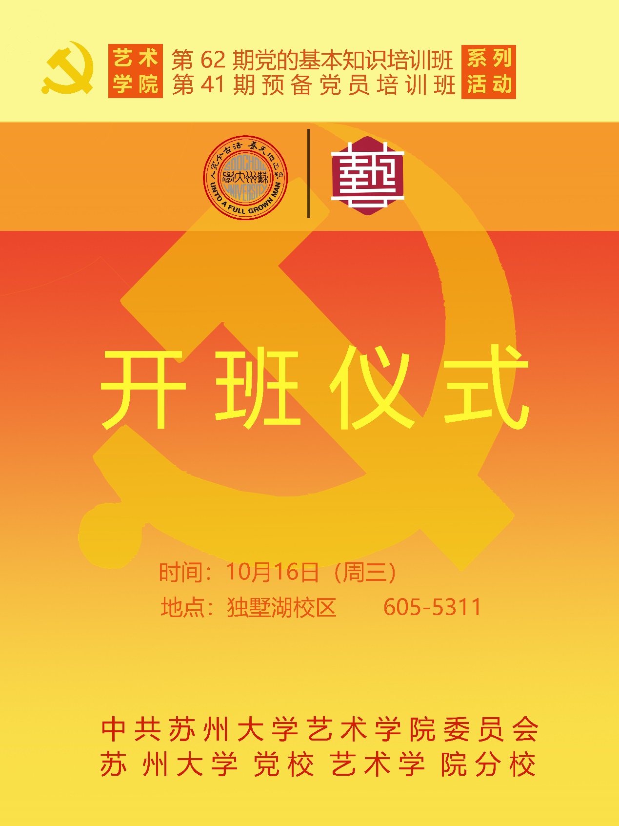 海报:艺术学院第62期党的基本知识培训班 第41期预备党员培训班系列活动——开班仪式