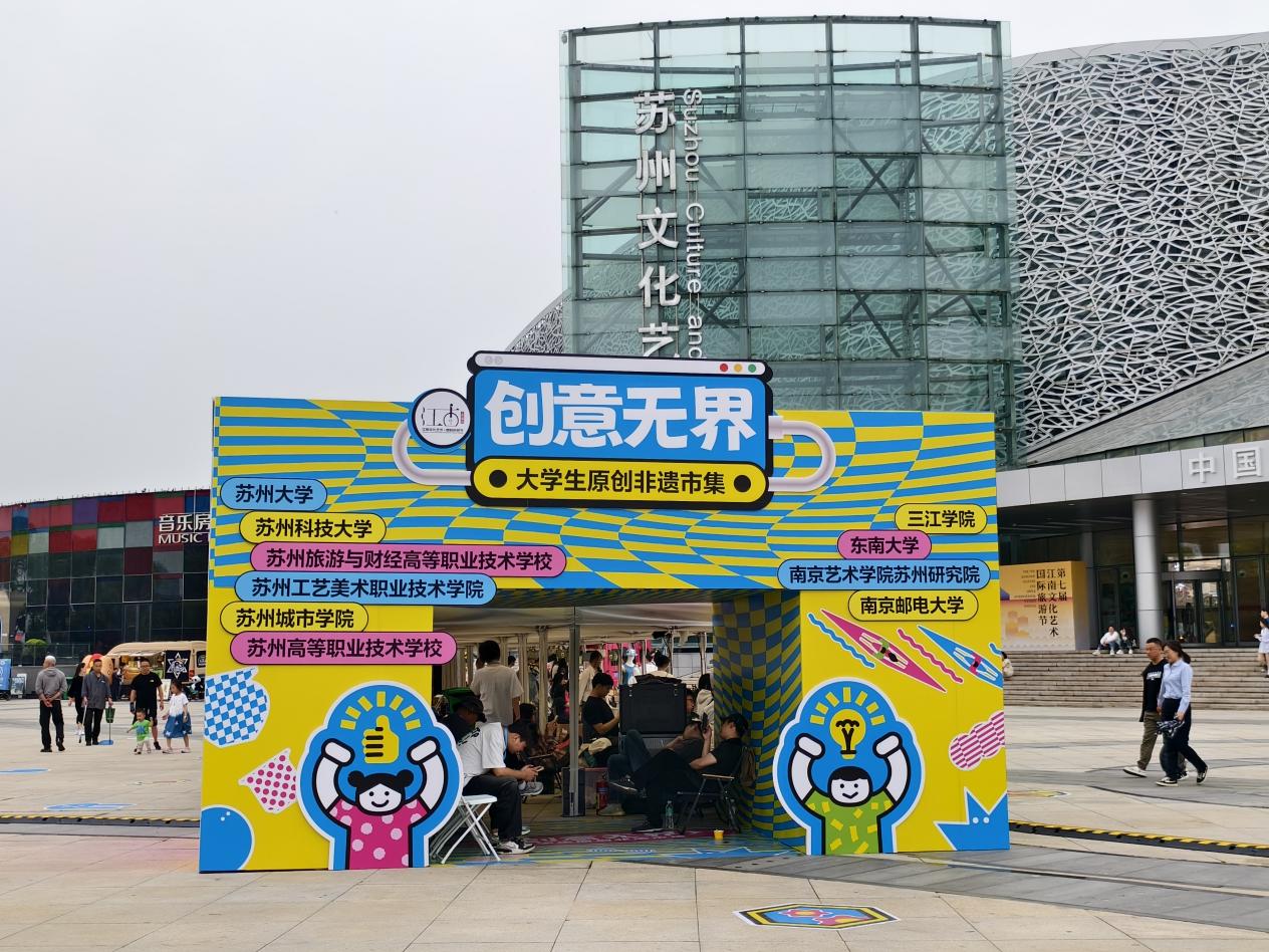 2025年4月30日下午5时,苏州文化艺术中心主广场热闹非凡,一场以“青春华彩·创意无界”为主题的大学生原创非遗市集在此拉开帷幕。苏州大学艺术学院以“8+1”特色摊位矩阵,携百余件原创非遗文创作品惊艳亮相,通过年轻化表达为苏州传统文化注入新活力,吸引近千名市民游客驻足体验。