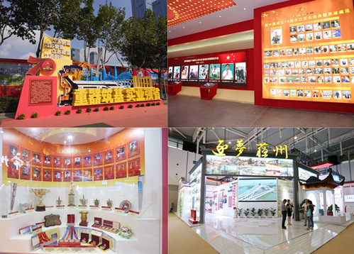 江苏省庆祝中华人民共和国成立70周年成就展以“礼赞新中国、奋进新时代”为主题,通过综合展、地方展和室外展3个展区,综合运用场馆展览、网上展览、挂图展示等形式,全面展示了新中国成立70年来党领导江苏人民进行建设、改革和发展的伟大历程、巨大成就和宝贵经验,突出展示党的十八大以来全省上下贯彻落实习近平总书记关于江苏工作重要指示精神,着力推动“五个迈上新台阶”,特别是推动高质量发展走在前列、建设“强富美高”新江苏的巨大成就。