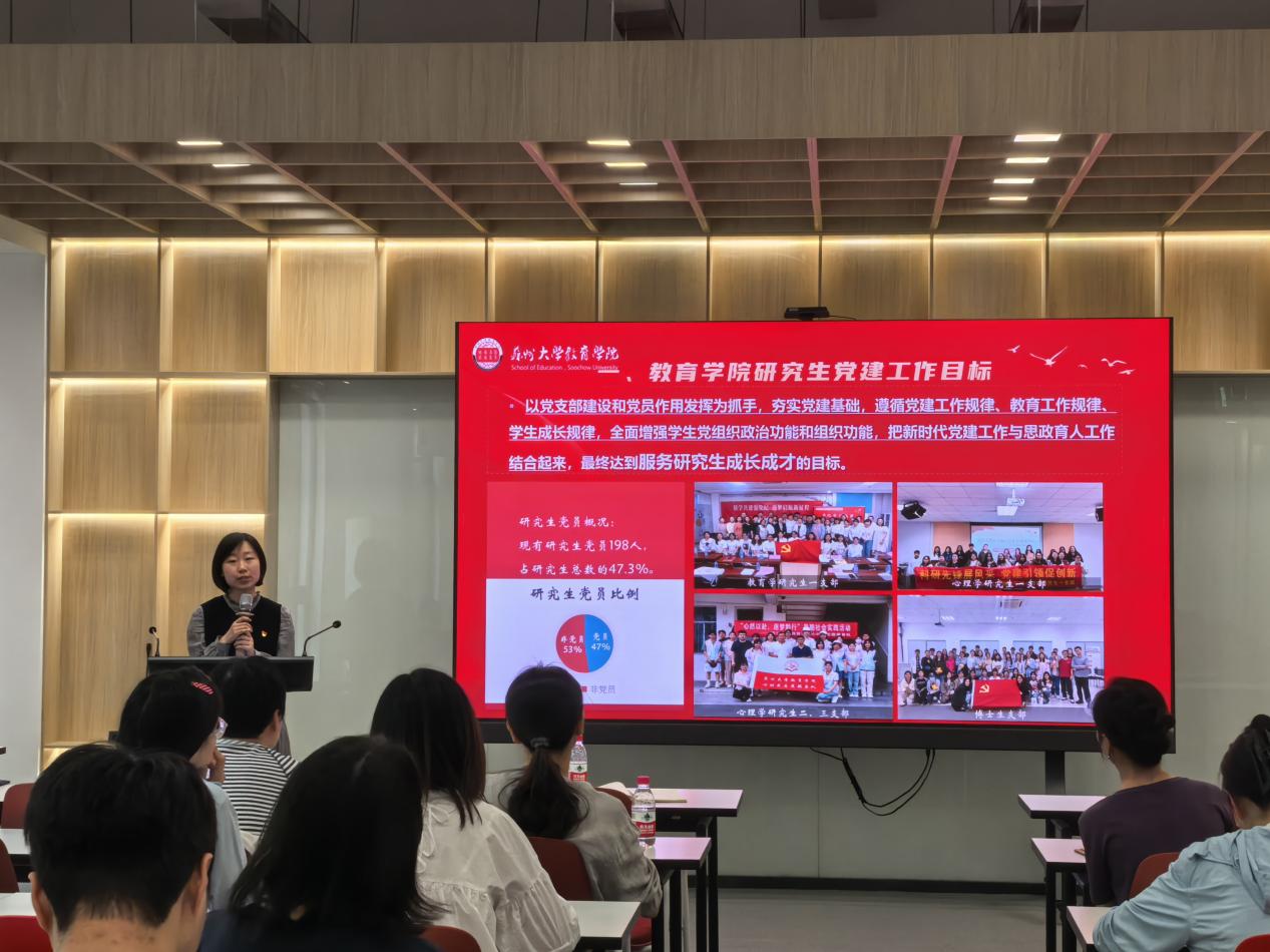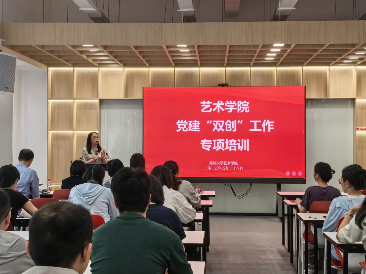 为全面深化推进苏州大学艺术学院党支部“对标争先”建设计划,扎实落实新时代高校党建“双创”工作部署,切实提升基层党组织建设质量与效能,5月28日14时,苏州大学艺术学院于604号楼一楼报告厅开展党建“双创”工作专项培训会议。本次培训邀请苏州大学组织部副部长薛曦、纺织服装与工程学院教工二支部书记方剑、教育学院团委书记张旻蕊做专题报告。艺术学院党委委员、党支部书记、支委成员参会,学院党委书记徐美华主持。
