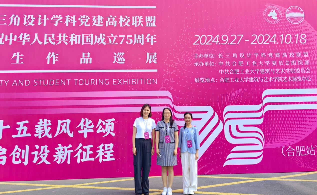 9月27日,苏州大学艺术学院党委副书记徐美华、研究生思政办公室副主任、研究生专职辅导员仇松莹、专职组织员魏欣颋赴合肥工业大学参加长三角设计学科党建高校联盟工作论坛暨庆祝新中国成立75周年师生作品巡展。