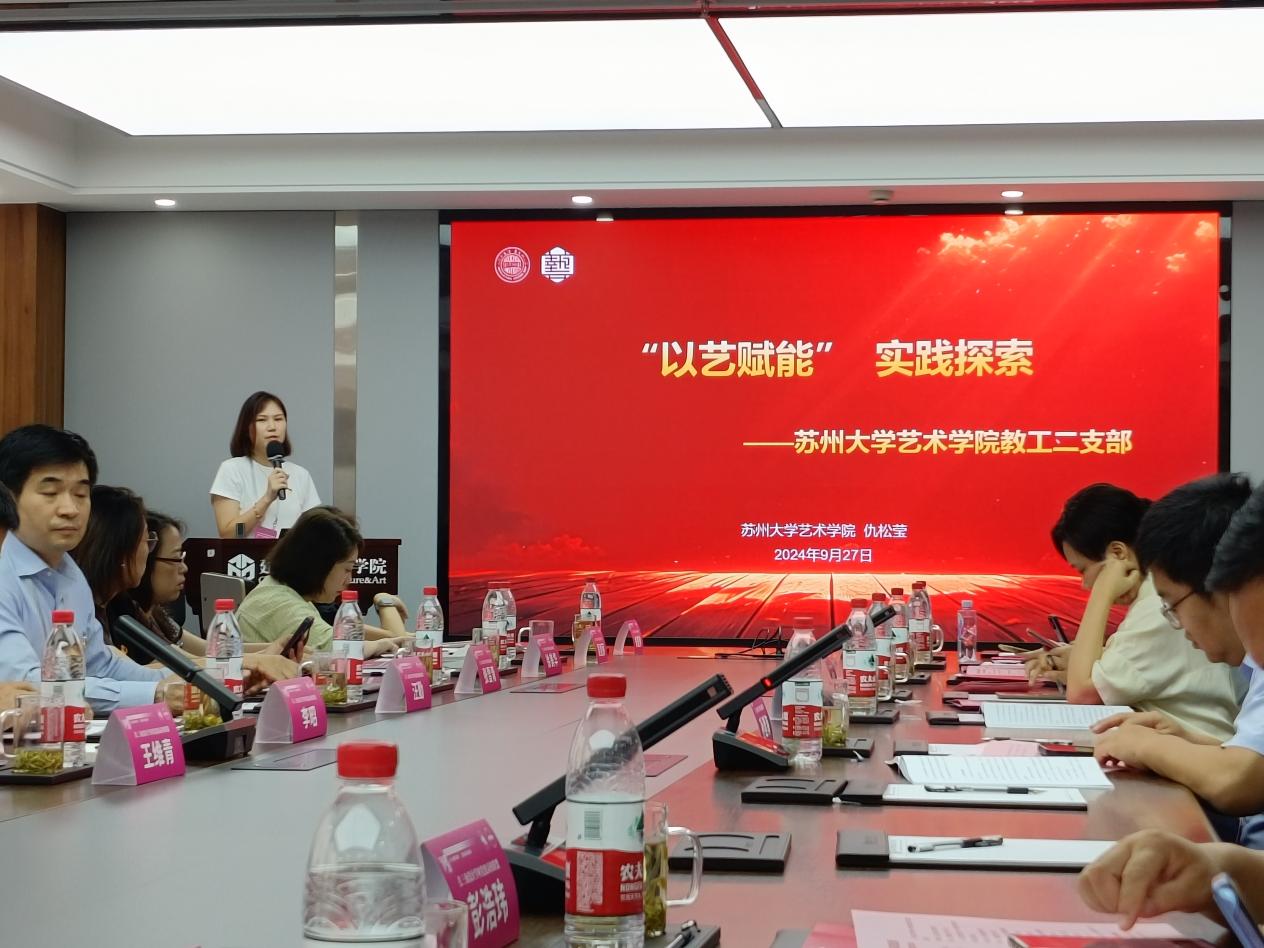 随后举行“党建引领赋能设计学科高质量发展”党建工作论坛。仇松莹老师代表苏州大学艺术学院作“以艺赋能实践探索”主题报告,结合学院开展的特色党建工作进行了分享交流。