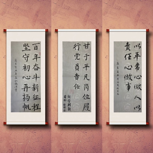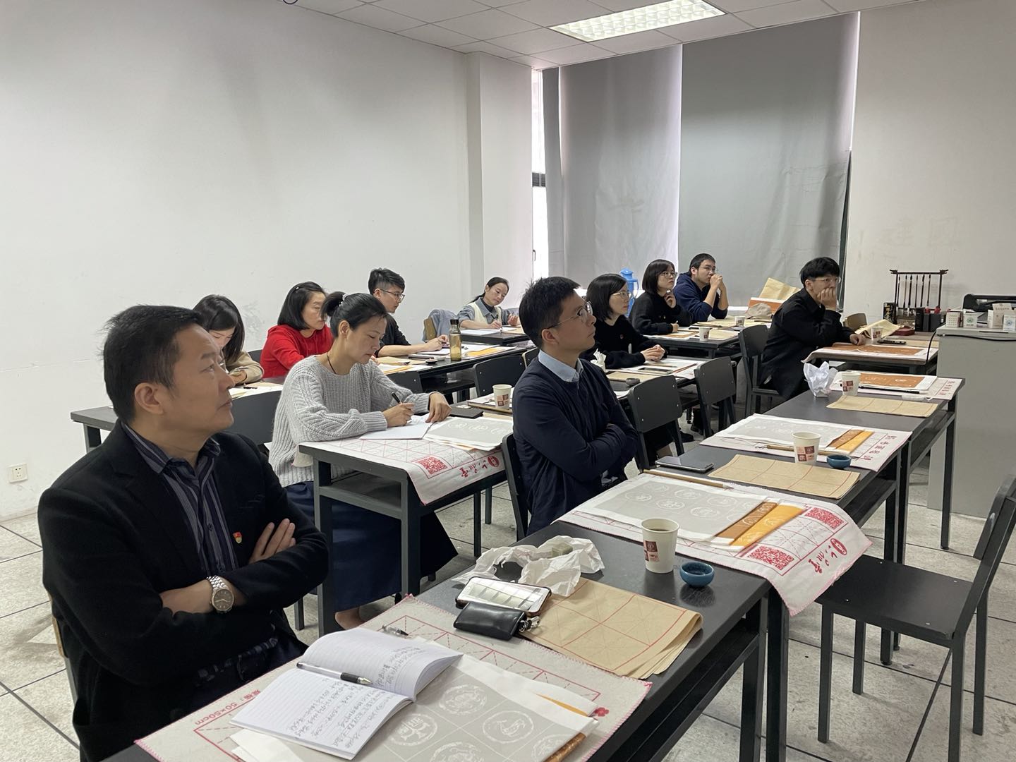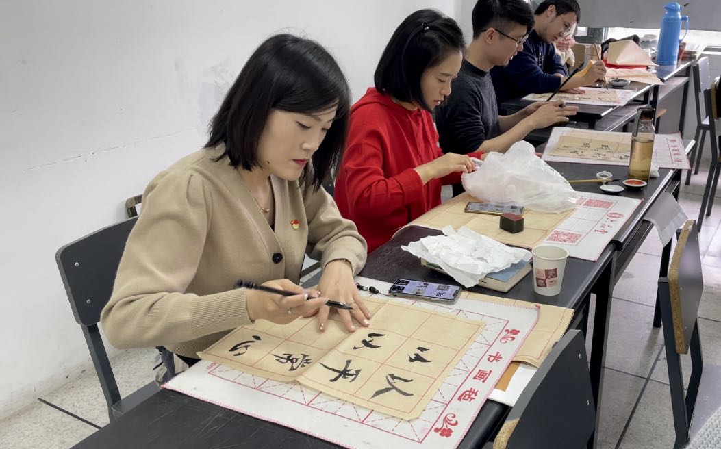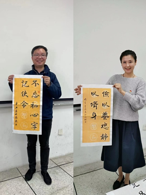 书法艺术是中华民族为人类世界创造的伟大艺术,是中华民族的优秀传统文化,把文化书法融入到党史学习里,用书法作为载体把党史内容艺术化展示,认认真真地书写党史金句,实实在在地学习党史。学院王天民老师精通书法,也积极向党组织靠拢,这次作为书法辅导老师,从执笔、书写要领、落款等方面进行讲解,并亲自进行辅导。