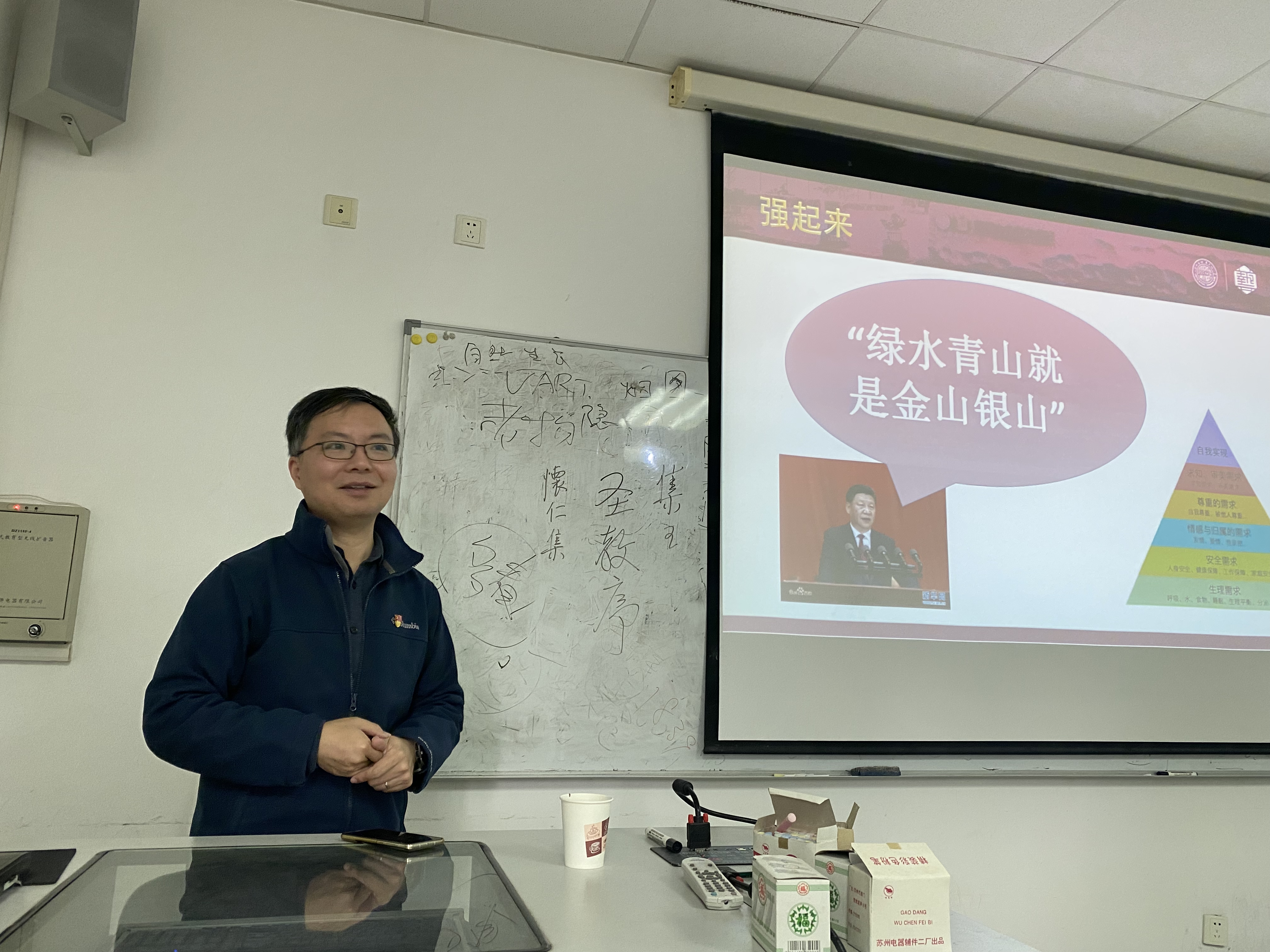 10月29日上午心理人工智能协同创新中心主任、艺术学院党委委员王尔东老师党史讲坛第四讲——从党史看“以人民为中心”的思想。王老师从心理学角度出发,依据马斯洛的人的需求层次,分析了从“站起来”、“富起来”、“强起来”我党的历史进程,以及在每个时期“以人民为中心”的政策方针。