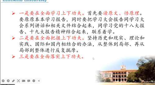 22级学硕党支部 入党积极分子谷泽辰:通过此次学习,我深刻地认识到作为新时代的青年应该如何尽到我们的责任和义务。我们应全面把握习近平新时代中国特色社会主义思想的世界观、方法论与贯穿其中的立场观点方法,深刻领会“两个结合”、“六个坚持”,争做社会主义新青年,积极工作,互帮互助,乐于奉献,共同为共产主义奋斗!