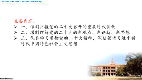 22级学硕党支部 入党积极分子何思琦:今天有幸参加了此次宣讲课程。思想体会主要有以下三点:首先是深刻把握党的二十大召开的重要时代背景。其次是深刻理解党的二十大新观点、新论断、新思想。最后则是认真学习贯彻党的二十大精神,深刻领悟习近平新时代中国特色社会主义思想。王雪博士的课程内容丰富详实、条理清晰,我们要一如既往保持学习的劲头、实干的状态,怀揣梦想,认真学习,脚踏实地,为国家和社会的发展、为中华民族的伟大复兴贡献智慧和力量。青春正当时,不负好时代。