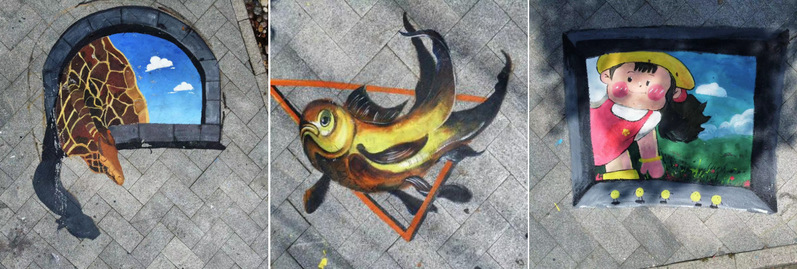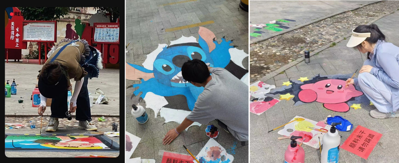 支部党员同学们一丝不苟地构图、着色、塑造,一幅幅栩栩如生的画作跃然地上,让地面瞬间灵动起来,色彩绚烂的地绘构成了一幅美丽宜居的新画卷。同学们通过手中的画笔,为宣传文明风尚打开了新“窗口”,让社区的面貌焕然一新,来往的居民无不赞叹支部党员同学们的心灵手巧。在实践活动中展现支部党员优秀的专业技能,发挥了党支部服务社区服务人民的先锋作用。