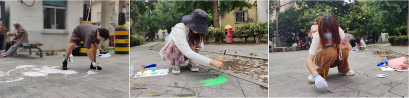 根据深入开展学习贯彻习近平新时代中国特色社会主义思想主题教育的实施方案相关要求,广泛开展党员志愿服务,激励党员在服务群众、奉献社会中发挥作用。在五一劳动节和五四青年节之际,艺术学院22级专硕党支部同学进入苏安南社区公园中开展“地绘文化进社区,青春助力展新颜”主题党日活动,为社区带来地绘实践活动。支部党员同学以青春为元素开展现场地绘创作,用手中的画笔描绘文明新风,为苏安南社区文明创建和宜居美化注入青春血液。