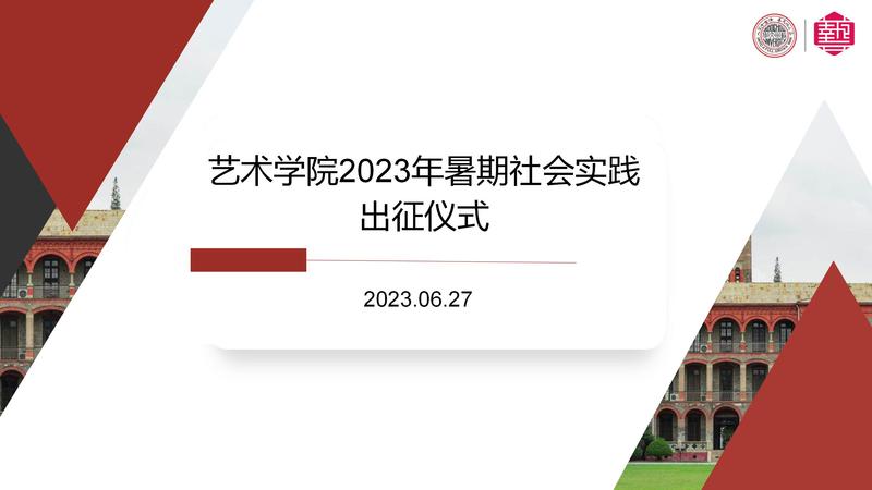 6月27日下午,苏州大学艺术学院召开2023年暑期社会实践出征仪式。院党委副书记、副院长张洁,院全体本科生辅导员,相关团队负责人及2022级本科生参加了本次出征仪式。