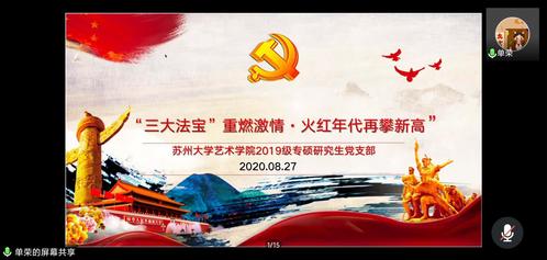 为了学习贯彻习近平总书记近期重要讲话精神,不断提升研究生党员的政治素养和党性修养,艺术学院各研究生党支部 8 月以来,相继联合开展“学习贯彻市委十二届十次全会精神 高质量发展实绩勇夺双胜利”、“三大法宝重燃激情·火红年代再攀新高”等主题党日活动。