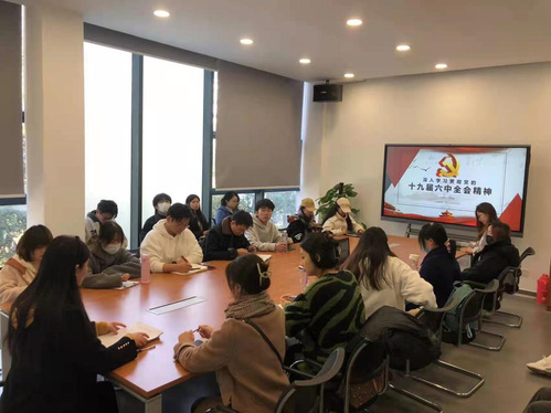 为深入学习宣传贯彻党的十九届六中全会精神,2021年11月24日,艺术学院本科生第一、第二党支部开展了党史学习教育系列之《学习党的十九届六中全会精神》,学习党百年奋斗的伟大成就和历史经验,由2019级美术学师范类油画班王译函同学领学。艺术学院本科生第一党支部书记贾扬娣、本科生党员、发展对象、积极分子参加活动,活动由本科生第二党支部书记赵胜楠主持。