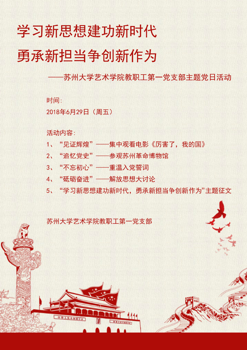 海报:学习新思想建功新时代,勇承新担当争创新行为——苏州大学艺术学院教职工第一党支部主题党日活动