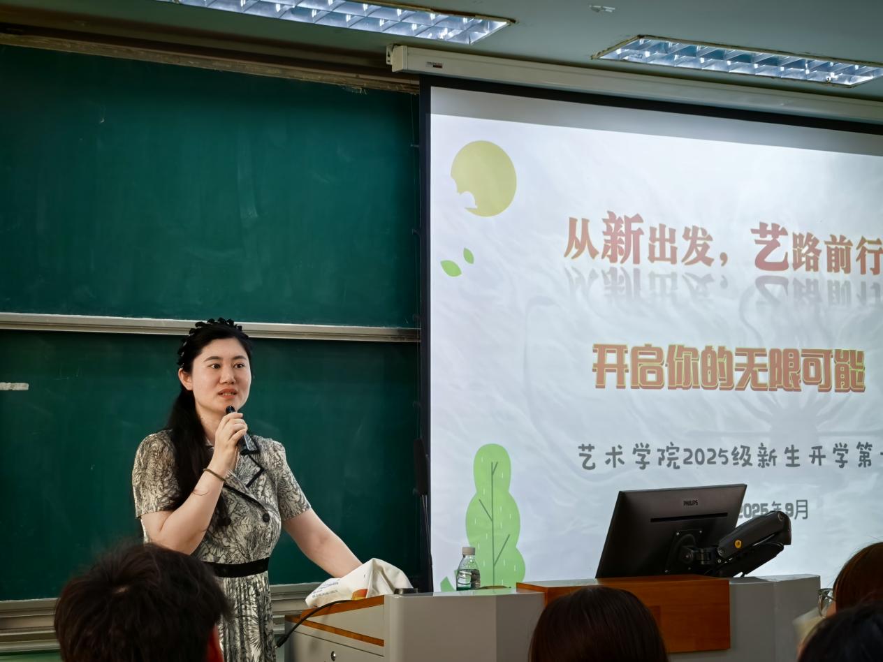 新生辅导员赵胜楠老师以“从新开始,艺路前行,开启你的无限可能”为主题,从三个方面为新生上了精彩的第一课。一是“遇见全新的自己”,引导新生们深入思考身份转变后的目标与定位,鼓励大家主动突破舒适区,培养独立学习与生活的能力。二是“探索无限可能”,结合丰富多彩的校园活动实例,启发新生挖掘兴趣潜能,合理规划大学发展路径。三是“敬畏共同的规则”,分别从安全底线、学术红线、行为基线三个方面进行详细解读,强调规则意识在个人成长中的关键作用,为新生筑牢校园生活的“底线思维”。
