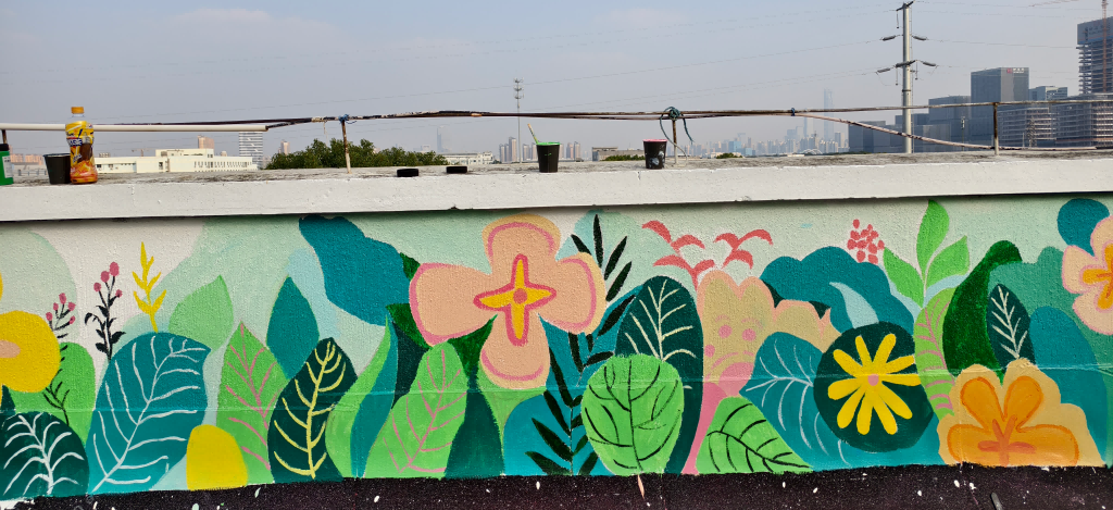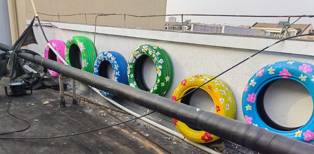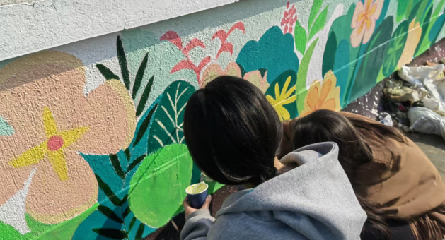 下午,研究生党员和积极分子们开展社区空间升级改造工作。在社区空中花园,用多样的艺术表现形式勾画出与社区生活息息相关的消防安全、绿色生活、垃圾分类等主题,描绘对社区未来发展的向往。从迷你的消防车到大幅蔷薇花园再到充满巧思的轮胎装置,平日里不起眼的建筑立面在大家的巧手下焕发新生,丰富了社区居民精神文化生活,以实际行动展现艺术学院党员的精神风貌。