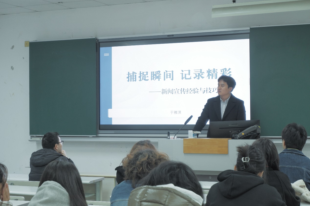讲座由我院优秀毕业生,现就职于我校党委宣传部的于雅淇学姐主讲。她为同学们详细讲解了新闻写作的基本原则及分类。她强调了新闻写作的准确性原则,指出信息必须准确无误,这是新闻的生命所在,避免任何错误的信息传播,以确保读者能够获得真实可靠的新闻内容。同时,她也着重提到了时效性原则,提醒同学们新闻稿应在活动结束后 1 - 2 天内及时发出,这样才能确保信息的时效性,让读者能够第一时间了解到最新的动态。