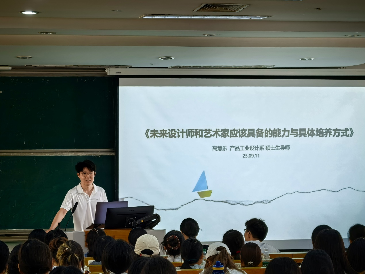 为助力新生快速融入专业学习、铺就未来优秀设计师与艺术家的道路,2025年9月11日上午,我院特邀产品设计工业系硕士生导师,首尔大学设计学博士高慧乐老师带来专题讲座,聚焦“未来设计师和艺术家应具备的能力与培养方式”,为新生答疑解惑。