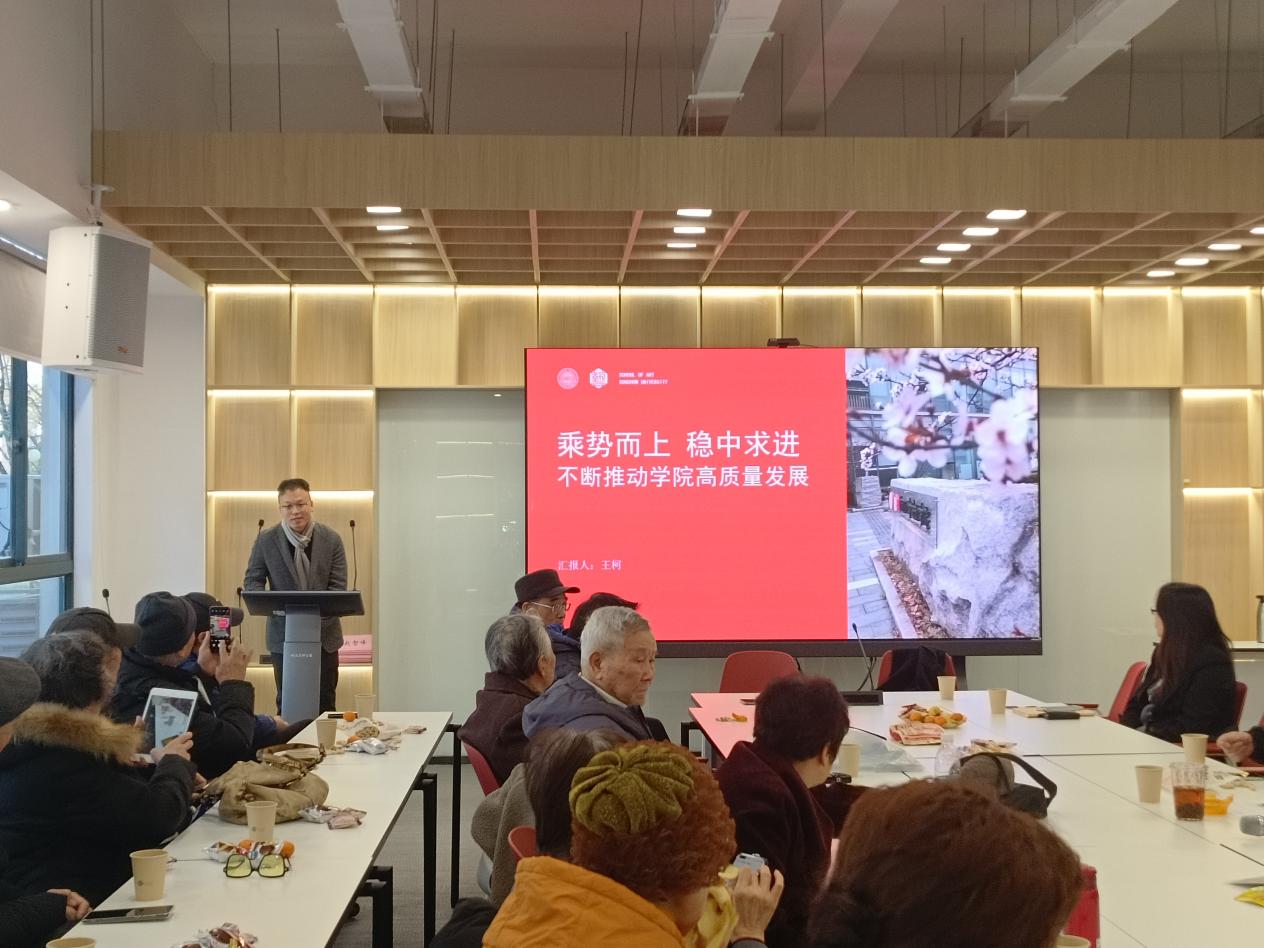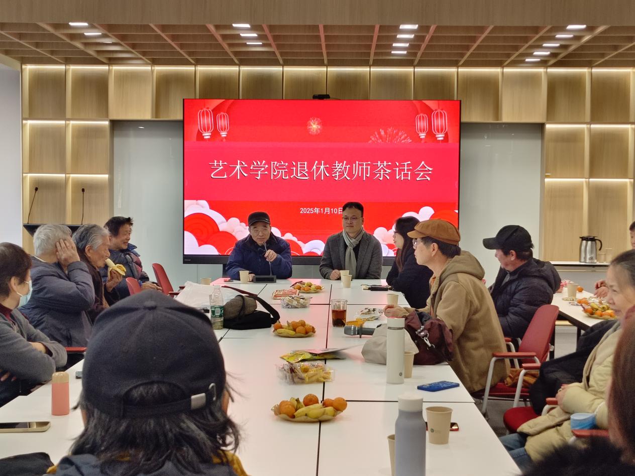 2025年1月10日,艺术学院在604报告厅举行退休教师茶话会,增强退休教师的归属感与幸福感,增进退休教师与学院的联系与交流,发挥退休教师的传帮带作用。学院党委书记宁正法、院长王柯、副书记徐美华、学院退休教师参加活动。