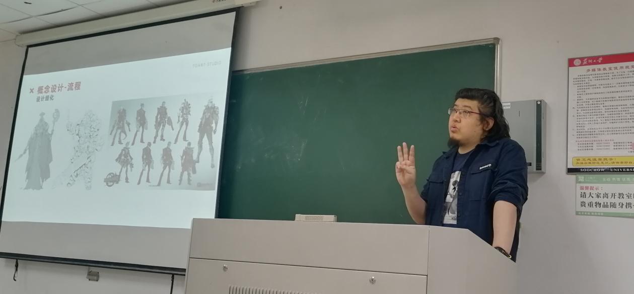 讲座中,吴老师就“数字概念艺术的行业发展趋势及从业者职业规划”为主题,从“就业分享”、“关于行业”、“职业规划”、“互动交流”四个角度为同学们阐述了概念设计的基本情况,让同学们有了更明确的学习方向。