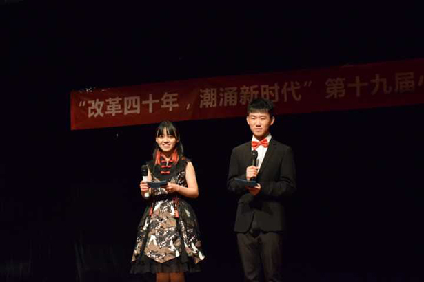 彩排结束后,演出在六点半正式开始。主持人意气风发,上台致词。热烈欢迎各位领导、老师、同学们的参加。