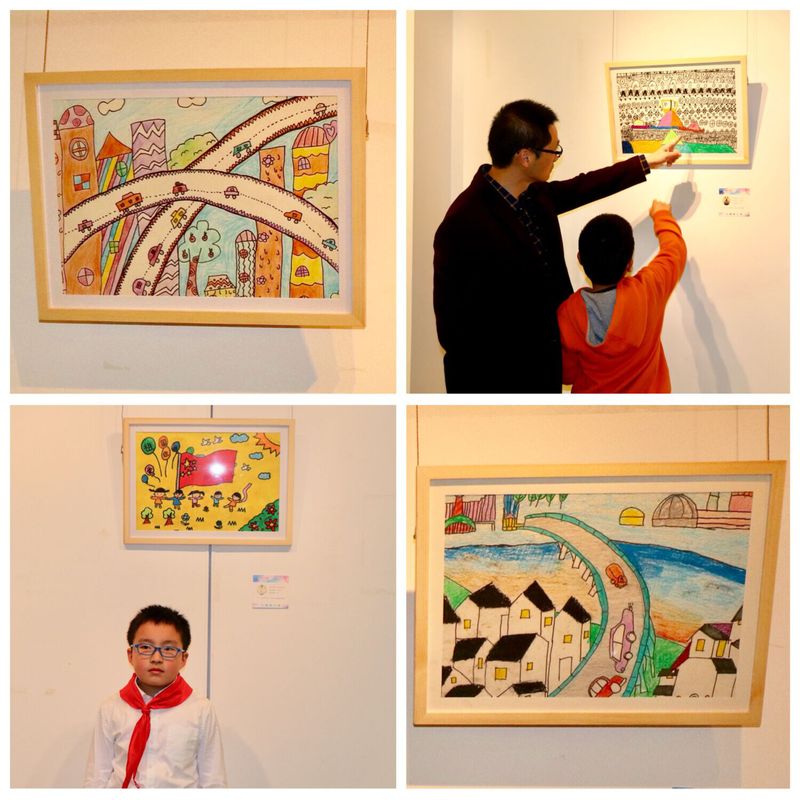 据悉,本次展览展出的作品都是小朋友们在大学生志愿者老师的引导下独立创作完成的。他们以“中国梦,我的梦”、“社会主义核心价值观”作为主题,描绘出了《致敬祖国》、《红旗下成长》、《社会主义新家园》、《友善之邦》等一幅幅精彩纷呈的画卷,五星红旗、天安门、长城、神舟飞船、解放军等形象以及社会新风尚在他们极富童真的想象下展现出独特的视觉冲击力。