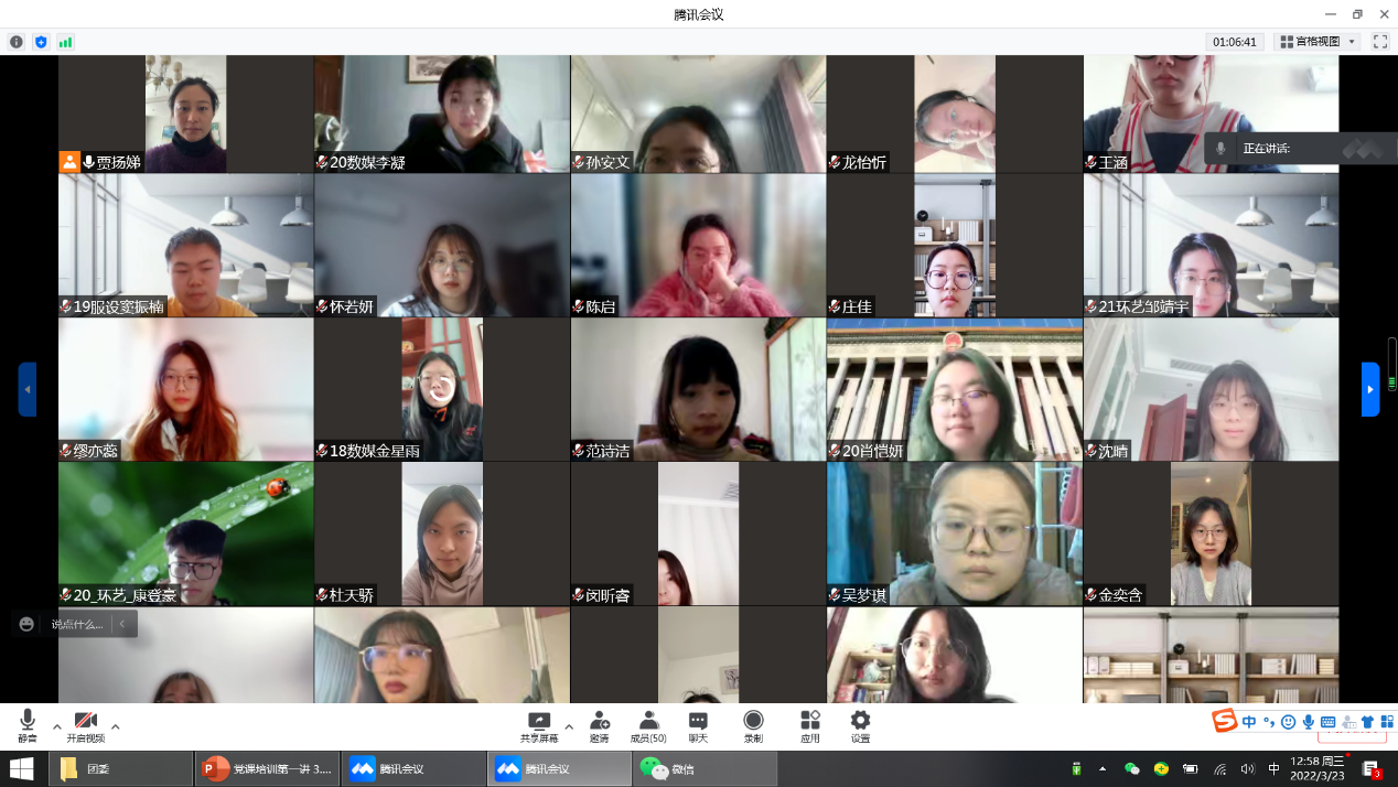 2022年3月23日中午,2022年上半年艺术学院分党校开学典礼暨第一次党课在线上举行。苏州大学艺术学院党委书记顾德学老师进行授课,苏州大学艺术学院党委副书记、副院长张洁老师,苏州大学艺术学院团委副书记贾扬娣老师,苏州大学艺术学院学工办副主任赵胜楠老师以及全体学员出席本次会议,会议由艺术学院团委兼职副书记武茜主持。
