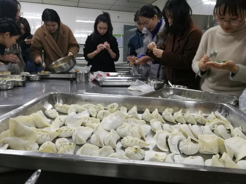 17日下午5:00,党支部书记和两位支委提前来到餐厅现场布置场地,备好食材、碗碟。下午5:30,活动正式开始,现场的同学都已摩拳擦掌跃跃欲试,在同学们灵巧的双手下,短短半个小时饺子就已全部包好。从南方的沙县饺子到北方的耳朵元宝,甚至还有同学包起了包子。