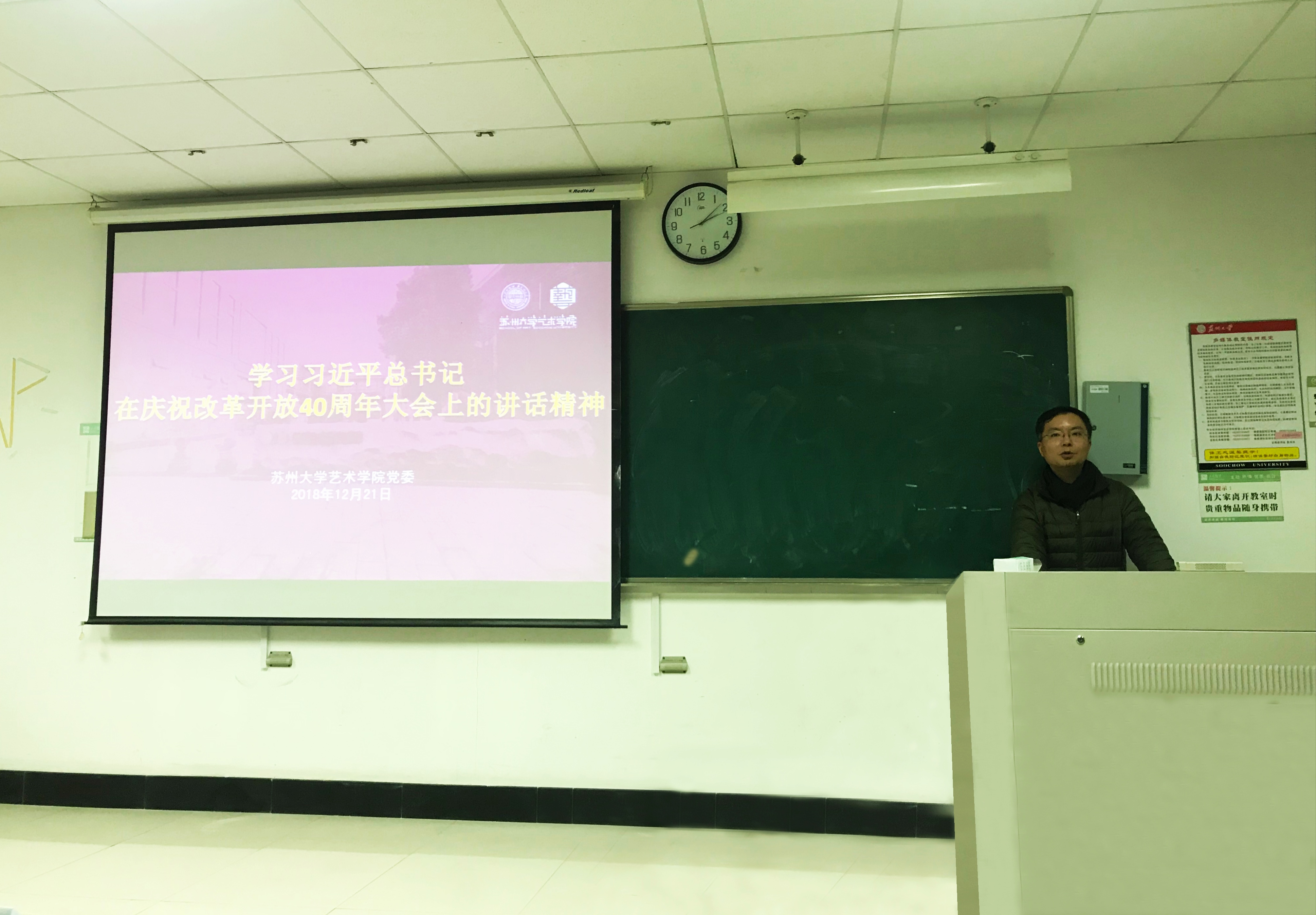 首先由郑老师对本次会议的目的及流程做了简单的介绍,随后王书记为党员同学上了一节“学习习近平总书记在庆祝改革开放40周年大会上的重要讲话精神”的主题党课。