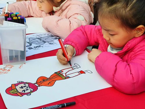 活动主要分为绘画消防主题作品、消防知识问答小游戏、发宣传单和分发气球四个主要板块。现场党员与志愿者们教孩子绘画关于消防的简笔画,以生动有趣的方式教授了消防知识。而消防知识问答小游戏通过提问五个消防小问题来考验社区民众的消防知识,答对五个就能拿到消防主题相关的奖品(消防抱枕、灭火器形的水杯)。本场活动还设计了消防安全宣传单,由志愿者们分发给附近居民群众。最后,为了吸引小朋友们的注意,还有小动物气球送给参加了活动,了解消防知识的小朋友。