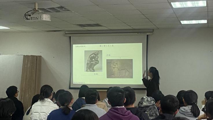 同学们主要观摩由吴县中学组织的高一年级教学公开课,两位任课老师是来自学院2020级美术学(师范)专业的章谊和吴诗杭。章谊挑选“雕塑”作为本次课程的主题,从定义、形式、材质与功能性四个角度向同学们详细全面地介绍了“雕塑”这一重要的造型艺术;吴诗杭从古诗词入手,深剖中华文化深根在笔墨中的内涵,挖掘国画浓墨重彩的意蕴。两位同学的教学公开课使观摩的同学们对教学过程、教学策略和教学方法有了更深刻的体验,同学们也能更深刻地感悟到教师工作的重要性和挑战性。