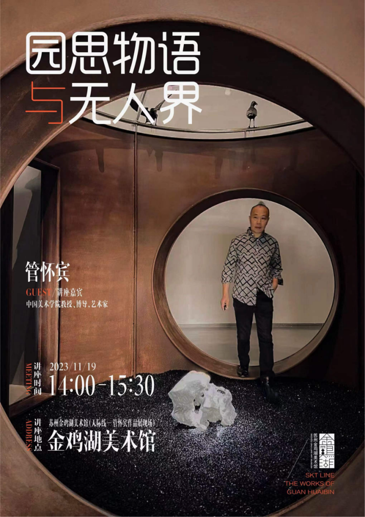 本次装置艺术展位于金鸡湖美术馆,由独立策展人、艺术评论家崔灿灿担任策展人,展名为《天际线》,取自其作品《无人界》。该展览呈现了管怀宾教授一直以来对精神构筑物的探索,以及几年来最庞大的艺术计划:关于形式与狂想、结构与材料、节奏与秩序的实验和创造。
