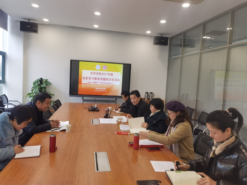 艺术学院党委根据苏州大学《关于认真开好党史学习教育专题民主生活会的通知》要求,于2022年1月18日上午9:30,在602-2206开展艺术学院2021年度党史学习教育专题民主生活会。