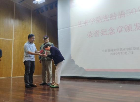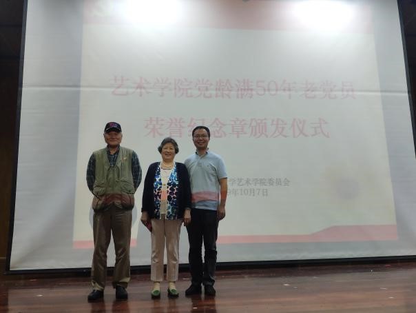 2019年10月7日下午4点,艺术学院党委在独墅湖校区601号楼二楼音乐厅举行50年党龄老党员纪念章颁发仪式,为艺术学院三位党龄满50年的老党员:史林老师、昝莲老师和沈辛炼老师颁发纪念章。艺术学院王尔东书记、顾德学副院长、张洁副书记等学院领导班子以及学院全体党员老师和学生参加了颁发仪式。副院长顾德学主持本次会议。
