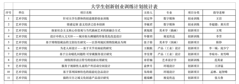 最后,经过老师们的认真讨论考虑最终决定2018年国家级、省级大学生创新创业计划项目和校企合作基金项目艺术学院申报艺术学院推荐项目结果如下: