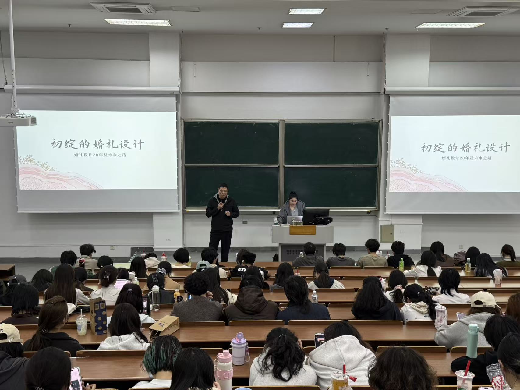 为进一步促进学生高质量发展,引领学院同学高质量就业,提升综合竞争素质,4月2日,艺术学院邀请著名企业喜福堂·Inheart Wedding创始人、苏州大学艺术学院校友郑亮,设计总监、校友李爽,前来做题为“初绽的婚礼设计”的专题讲座,与学院2024级二百多位同学分享了婚礼设计行业现状与创就业经验。此次讲座系学院学生发展支持中心“千里”就业提升系列讲座,学院党委副书记、副院长虞岚,学生工作办公室沈院生、仇松莹老师参加、聆听了讲座。