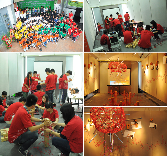 参加此次活动的有苏州大学艺术学院、苏州科技学院、 苏州工艺美院 、苏州经贸学院 、 苏州职业大学 、常熟理工6所在苏高校环艺专业的学生。本次大赛旨在加强设计企业与学校的联合,为此组委会为每个参赛队配备了两位企业指导老师,为苏大艺术学院配备的指导老师是苏州柯利达装饰公司的陈峰和朱升老师,两位老师不仅给予了关键性的指导而且在材料方面给予大力支持,在此我们也表示深深的谢意。