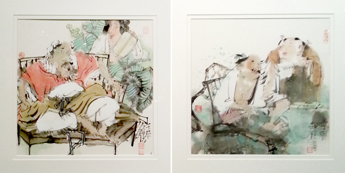 李超德教授的绘画作品体现了他独具匠心的绘画技巧和学术素养。特别是他将绘画与个人生活的品质紧密联系起来,以一种闲适的心灵状态,看待时光的流逝,展现出“花开花落,云卷云舒”的人生境界。他常常强调品质生活的感悟便是对心境的掌控:“现代生活比从前忙碌得多,这个时候,心态就更重要,唯有从容地生活,才能真正感受到时光给予的馈赠。在一定程度上品质是要用心去感受的,有了宽松、宁静、安逸的心境,便能在紧张的快节奏工作之余获得心灵的释放,那里有快乐、幸福、学养、欣慰……积淀多了,品质生活自然就来到你身边。”这次展出的四十八幅中国画人物小品,正是李超德教授精神世界的映照。