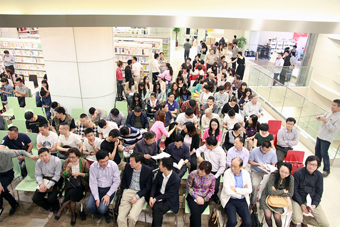 当主持人宣布活动告一段落,可以稍作休息,买书之后找理由老师签名。大家已迫不及待,一拥而上,拿出早已买好的书给理由老师签名,将理由老师围在了中间。经过工作人员及时的疏通,现场才开始有序的排队进行签售。
